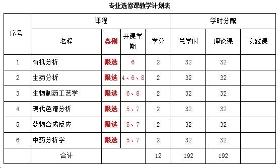包括公共选修课和专业选修课。其中,公共选修课情况详见附表;专业选修课共开设6门,共计192学时。