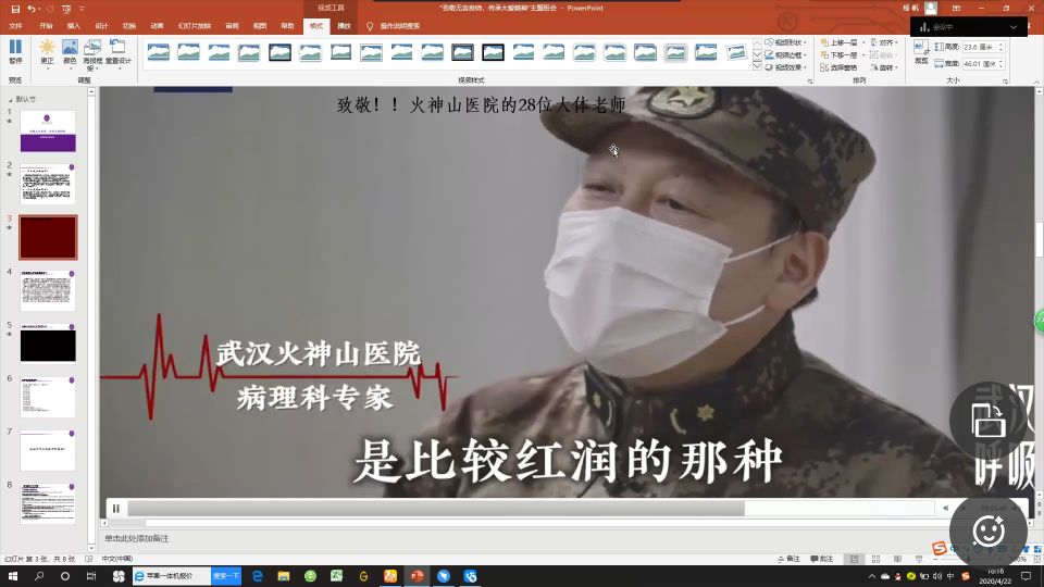 为缅怀遗体与器官捐献者,弘扬大体老师的无私奉献精神,2018级药学班于4月22日下午召开了“致敬无言良师,传承大爱精神”线上主题班会活动。学业导师赵锋老师、辅导员韩丽娇老师和全班同学参加了此次会议。