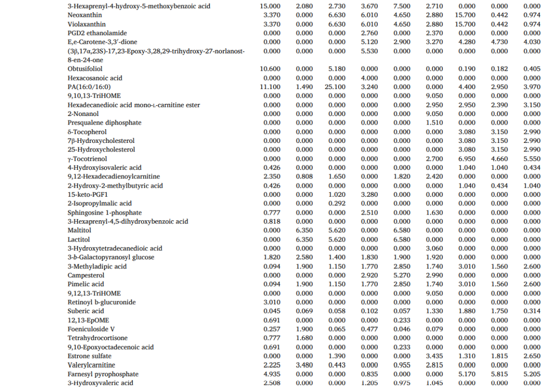 图5 不同的代谢物结果