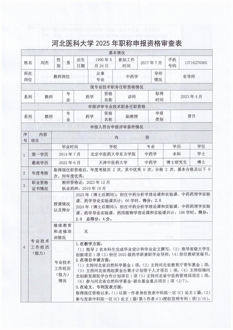 专业技术职务任职资格情况一览表-刘杰