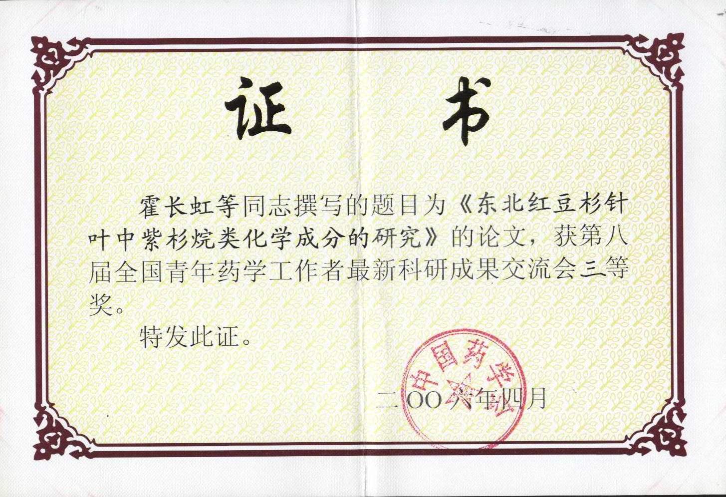 2006-04霍长虹等获第八届全国青年药学工作者科研成果