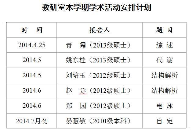 本学期我室研究生学术讲座安排计划