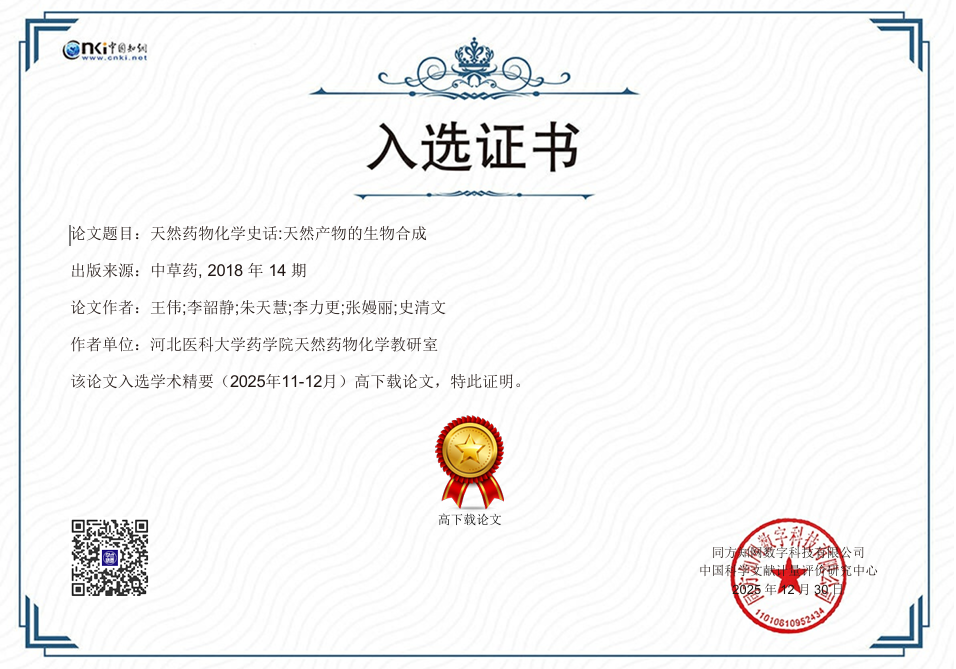 我室发表的《天然药物化学史话:天然产物化学研究的魅力》荣获高PCSI论文、高被引论文、高下载论文大满贯论文;《天然药物化学史话:天然产物的合成》荣获高下载论文。